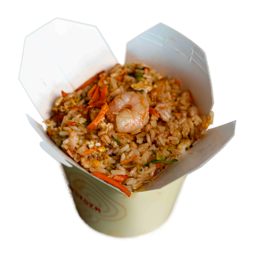 Riso basmati, mix di verdure, uovo, gamberi, secret wokoza, sesamo